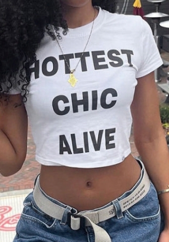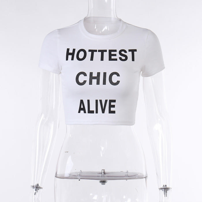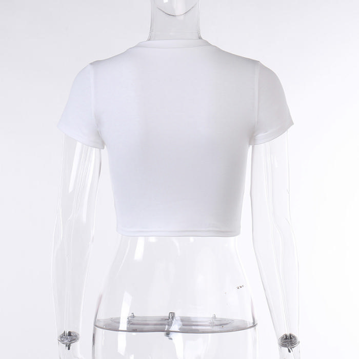 (Real Image)2023 Styles Women Sexy&Fashion Spring&Summer TikTok&Instagram Styles Print Short Sleeve TeeSKU: #XF92745-1