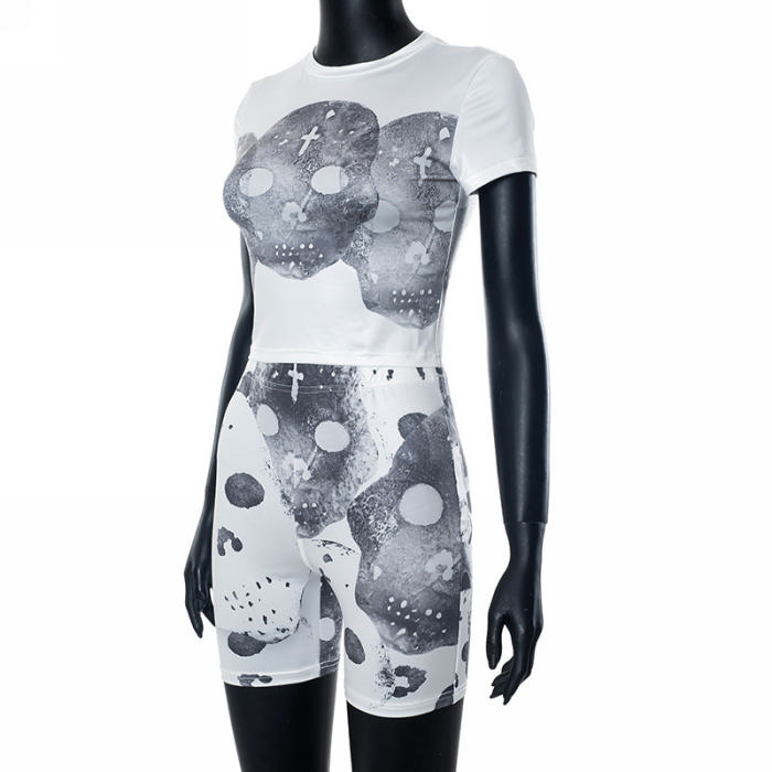 (Real Image)2023 Styles Women Sexy&Fashion Spring&Summer TikTok&Instagram Styles Print Short Two Piece SuitSKU: #CF47514-1