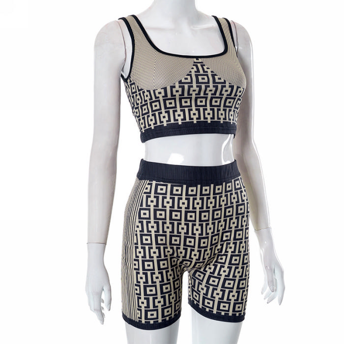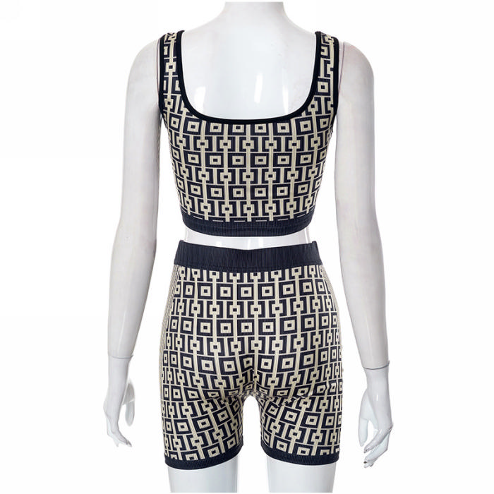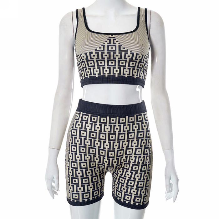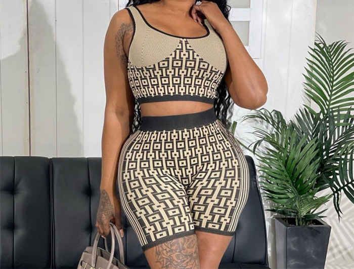 (Real Image)2023 Styles Women Sexy&Fashion Spring&Summer TikTok&Instagram Styles Print Short Two Piece SuitSKU: #CF47525-1