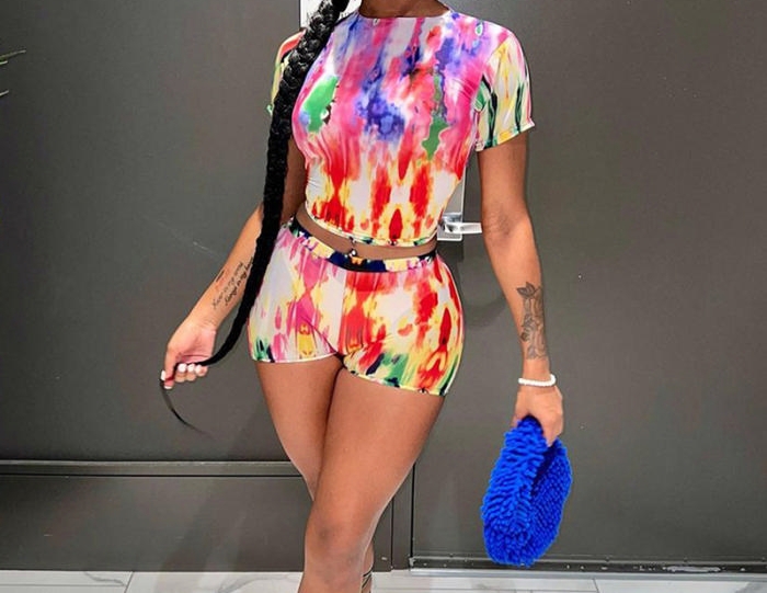 (Real Image)2023 Styles Women Sexy&Fashion Spring&Summer TikTok&Instagram Styles Print Short Two Piece SuitSKU: #CF47520-1