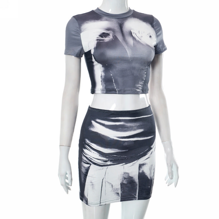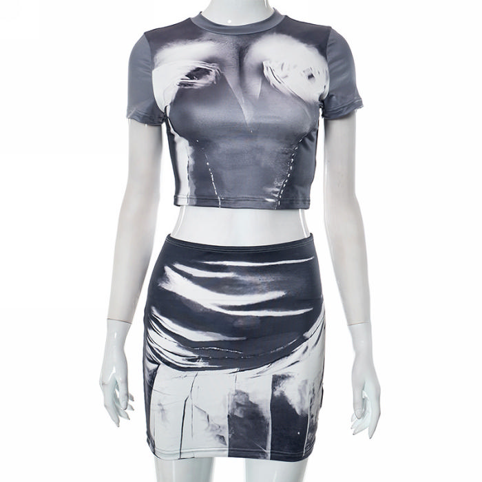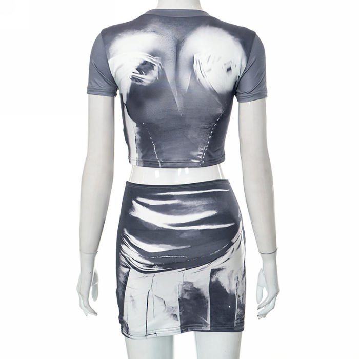 (Real Image)2023 Styles Women Sexy&Fashion Spring&Summer TikTok&Instagram Styles Print Short Two Piece SuitSKU: #CF47534-1