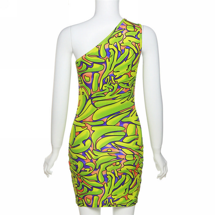 (Real Image)2023 Styles Women Sexy&Fashion Spring&Summer TikTok&Instagram Styles Print Single Shoulder Mini DressSKU: #CF83063-1