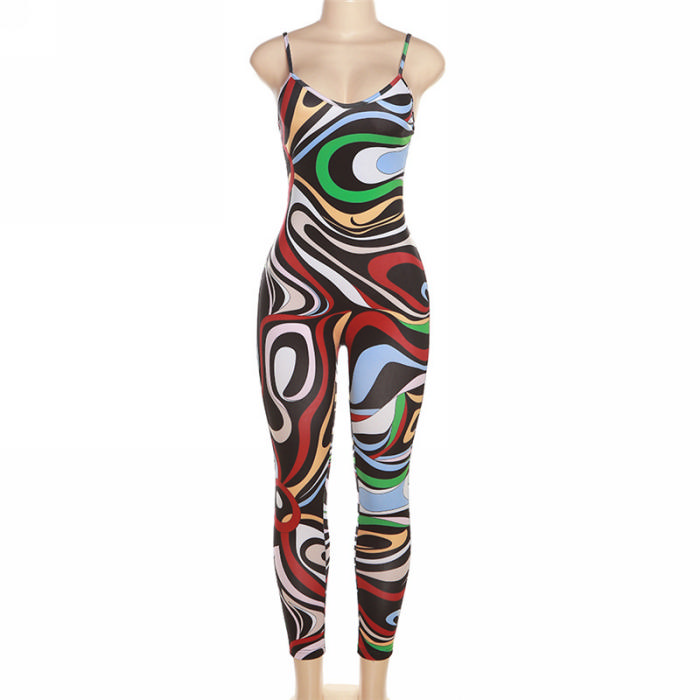 (Real Image)2023 Styles Women Sexy&Fashion Spring&Summer TikTok&Instagram Styles Print Strap JumpsuitSKU: #CF77299-1