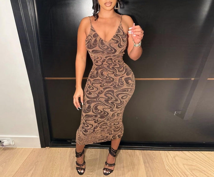 (Real Image)2023 Styles Women Sexy&Fashion Spring&Summer TikTok&Instagram Styles Print Strap Midi DressSKU: #CF59451-1