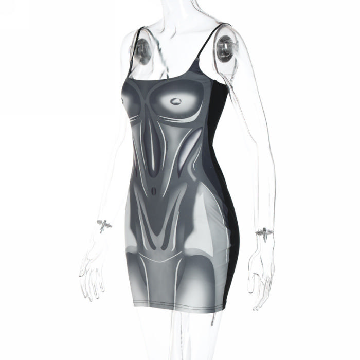 (Real Image)2023 Styles Women Sexy&Fashion Spring&Summer TikTok&Instagram Styles Print Strap Mini DressSKU: #CF22883-1