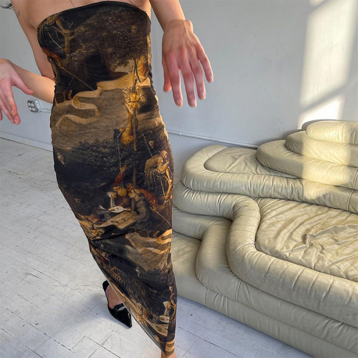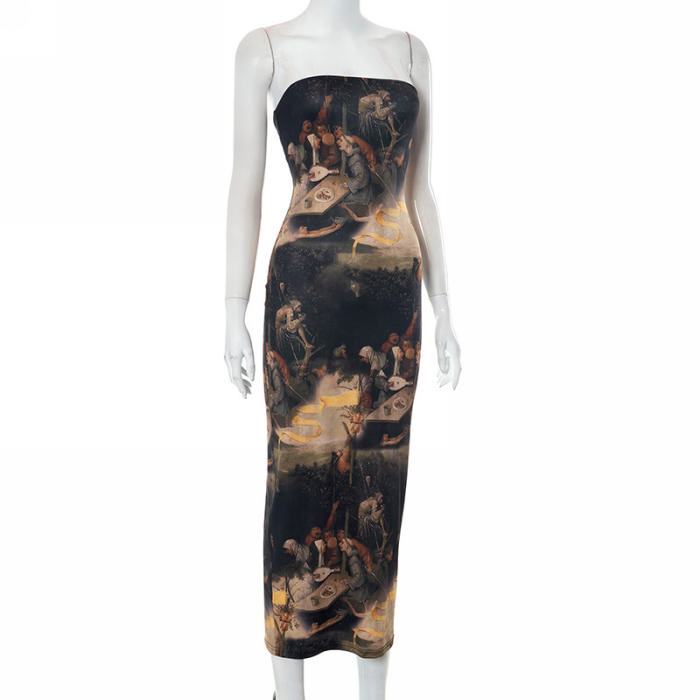 (Real Image)2023 Styles Women Sexy&Fashion Spring&Summer TikTok&Instagram Styles Print Tube Maxi DressSKU: #CF80110-1