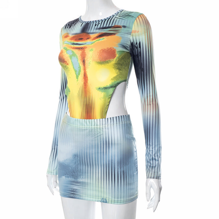 (Real Image)2023 Styles Women Sexy&Fashion Spring&Summer TikTok&Instagram Styles Print Two Piece DressSKU: #CF80085-1