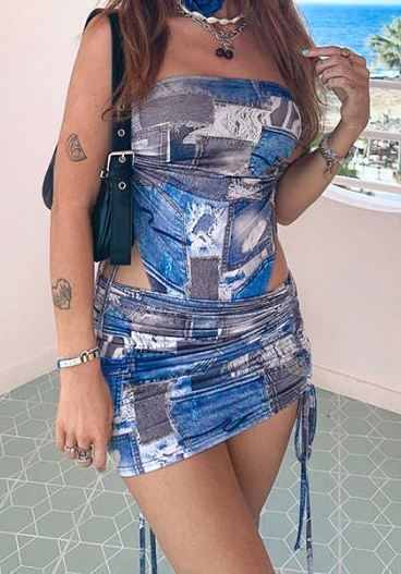 (Real Image)2023 Styles Women Sexy&Fashion Spring&Summer TikTok&Instagram Styles Print Two Piece DressSKU: #CF80149-1