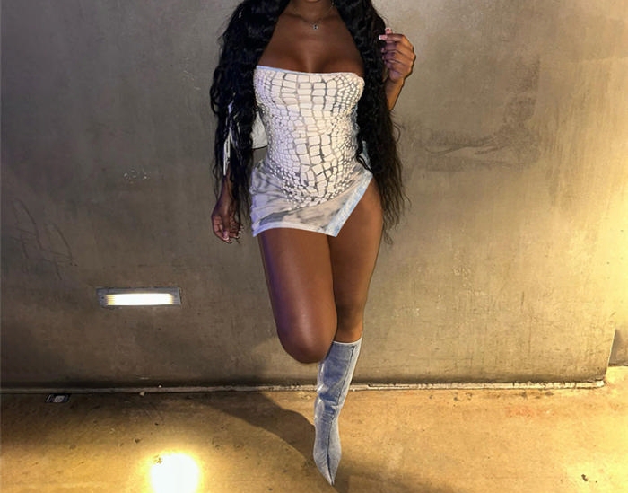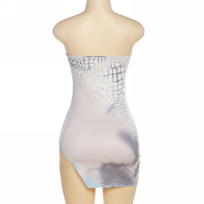 (Real Image)2023 Styles Women Sexy&Fashion Spring&Summer TikTok&Instagram Styles Print White Irregular Mini DressSKU: #CF83146-1
