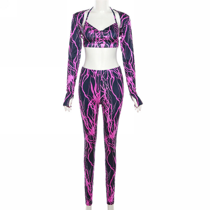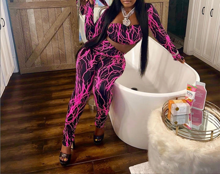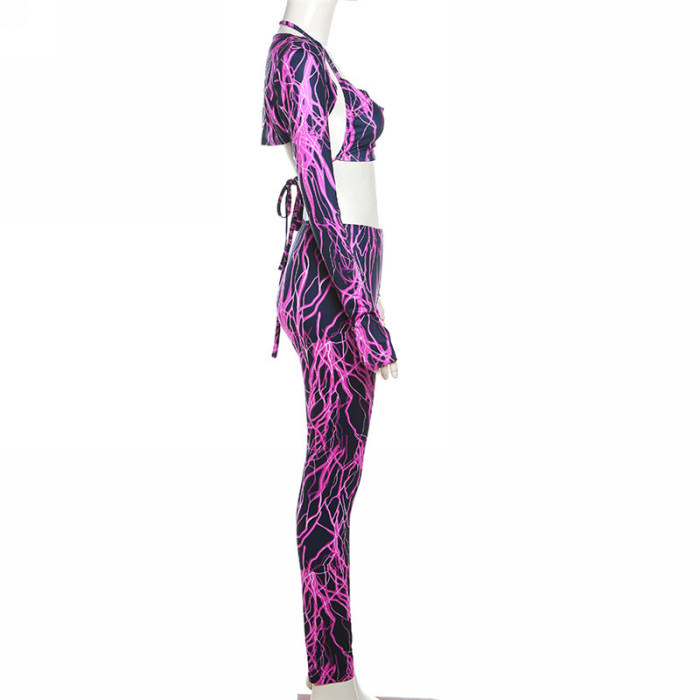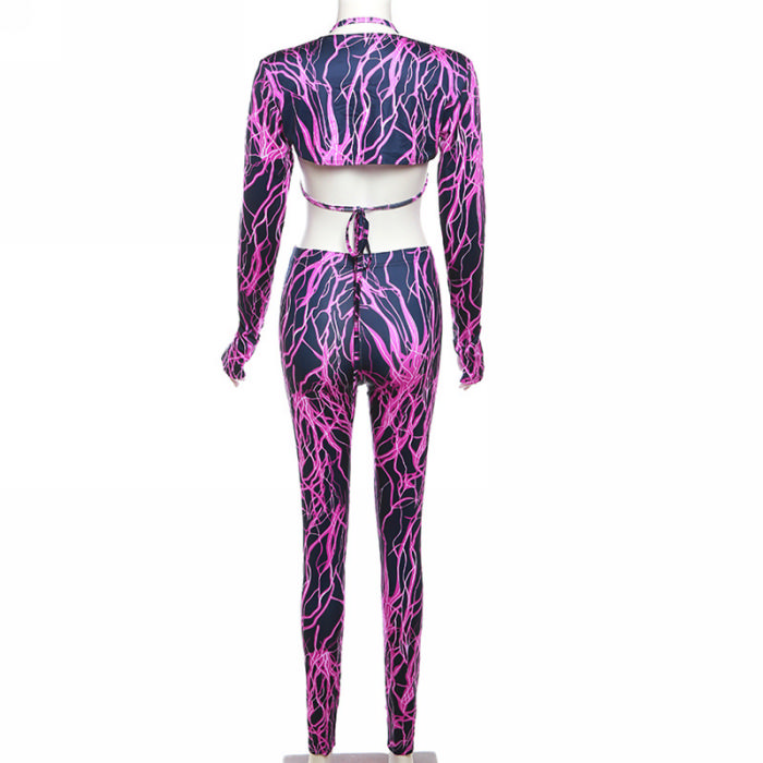 (Real Image)2023 Styles Women Sexy&Fashion Spring&Summer TikTok&Instagram Styles Purple Long Sleeve Two Piece SuitSKU: #CF77543-1