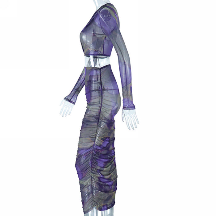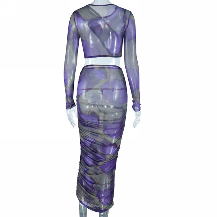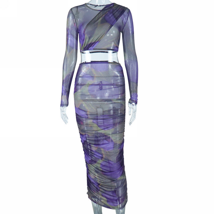 (Real Image)2023 Styles Women Sexy&Fashion Spring&Summer TikTok&Instagram Styles Purple Mesh Maxi DressSKU: #CF67137-1