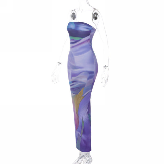 (Real Image)2023 Styles Women Sexy&Fashion Spring&Summer TikTok&Instagram Styles Purple Print Maxi DressSKU: #CF88048-1