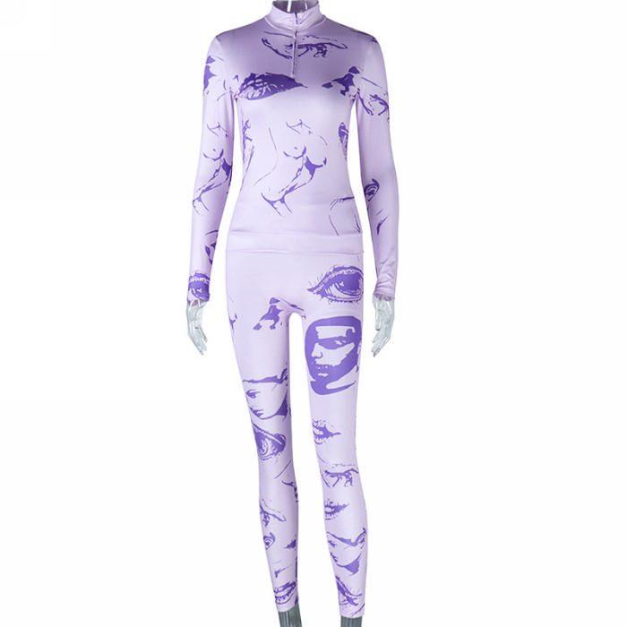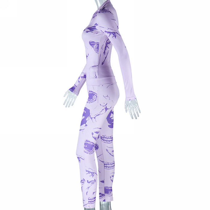 (Real Image)2023 Styles Women Sexy&Fashion Spring&Summer TikTok&Instagram Styles Purple Two Piece SuitSKU: #CF67106-1