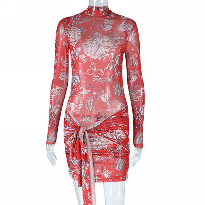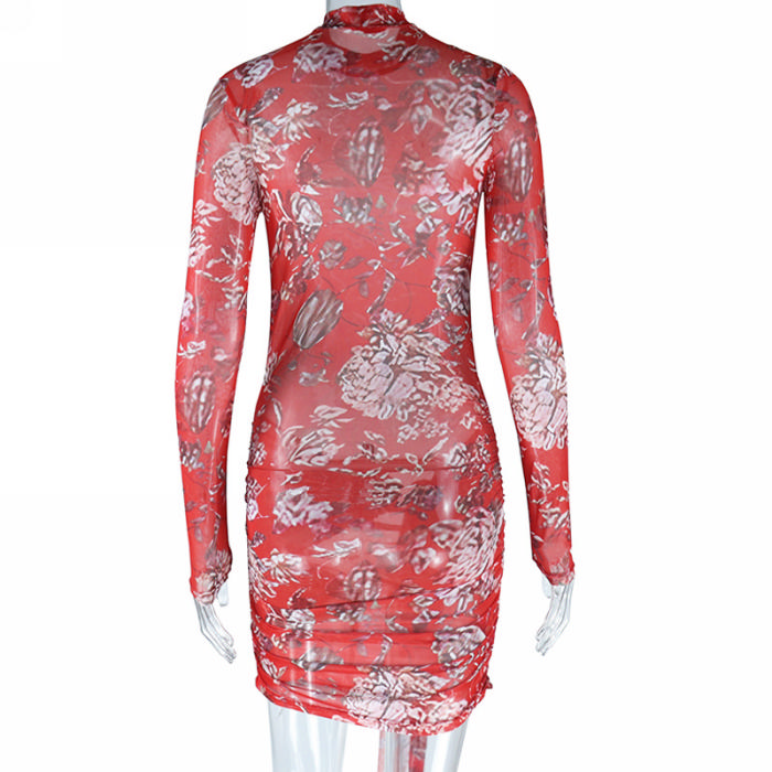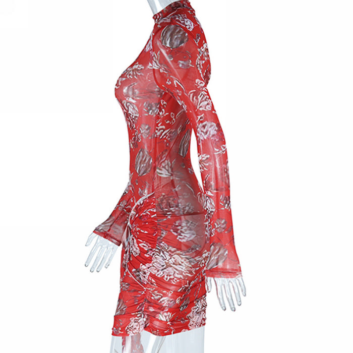 (Real Image)2023 Styles Women Sexy&Fashion Spring&Summer TikTok&Instagram Styles Red Print Long Sleeve Mini DressSKU: #CF67135-1