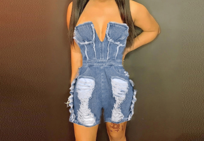 (Real Image)2023 Styles Women Sexy&Fashion Spring&Summer TikTok&Instagram Styles Ripped Jeans RomperSKU: #CF59578-1