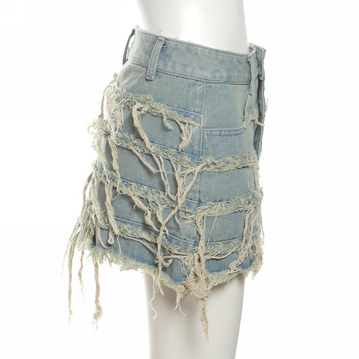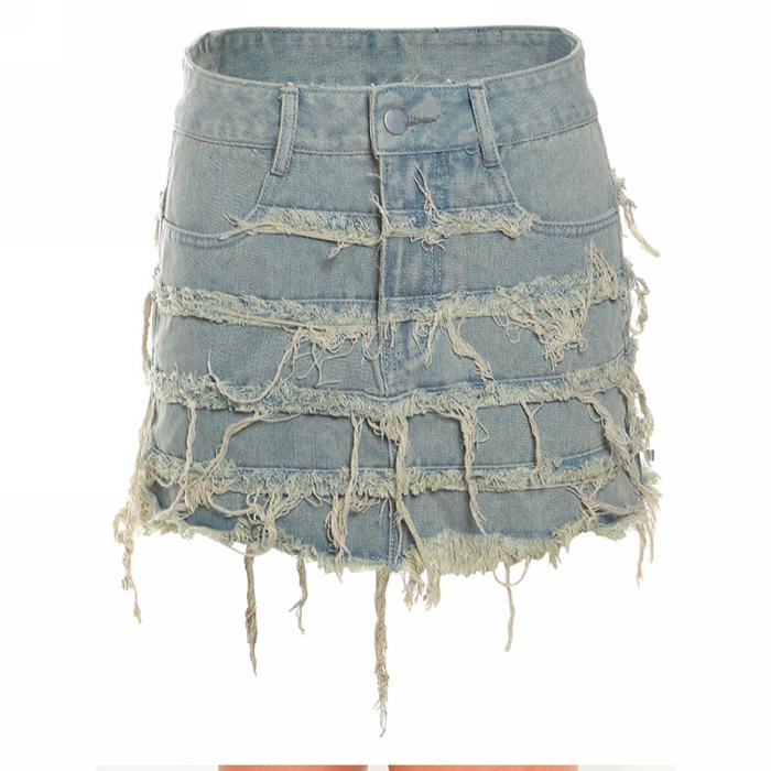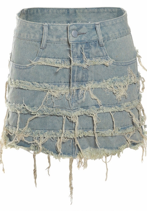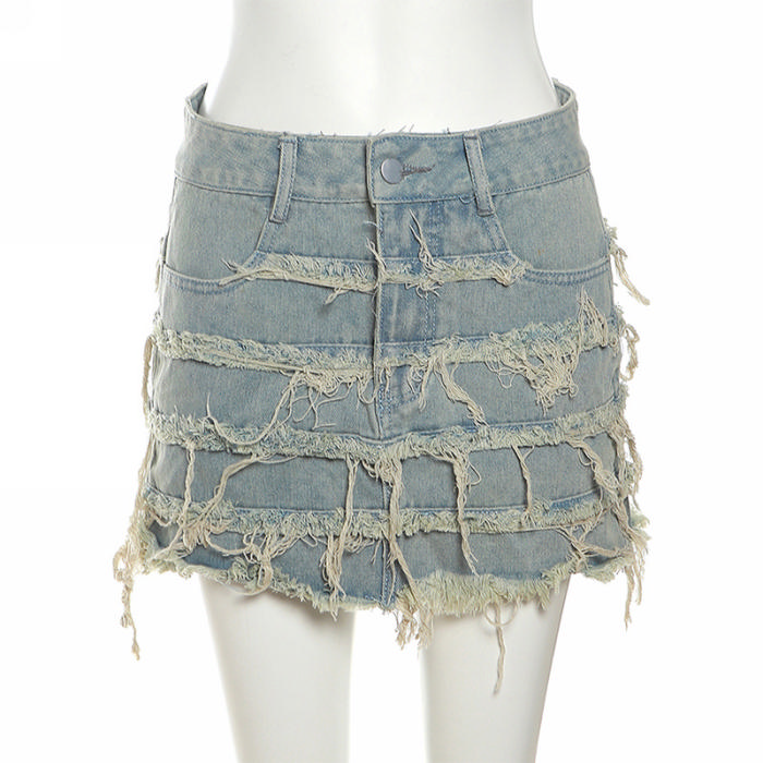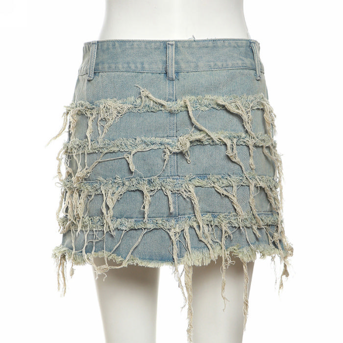 (Real Image)2023 Styles Women Sexy&Fashion Spring&Summer TikTok&Instagram Styles Ripped Jeans SkirtsSKU: #CF77573-1