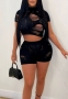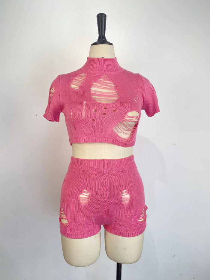 (Real Image)2023 Styles Women Sexy&Fashion Spring&Summer TikTok&Instagram Styles Ripped Sweater Short Two Piece SuitSKU: #OM439-2