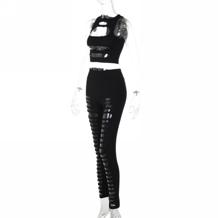 (Real Image)2023 Styles Women Sexy&Fashion Spring&Summer TikTok&Instagram Styles Ripped Two Piece SuitSKU: #CF22974-1