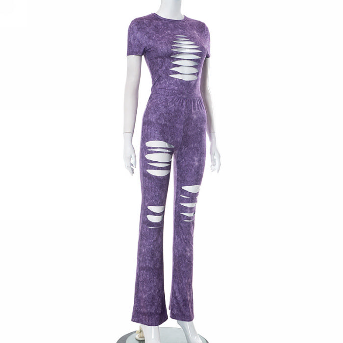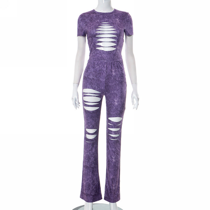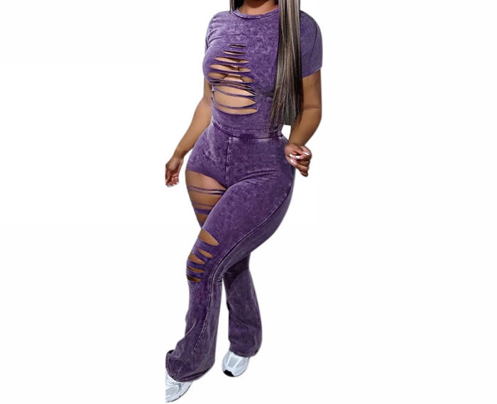 (Real Image)2023 Styles Women Sexy&Fashion Spring&Summer TikTok&Instagram Styles Ripped Two Piece SuitSKU: #CF47540-1