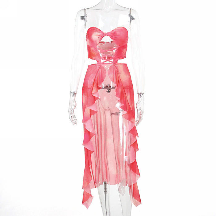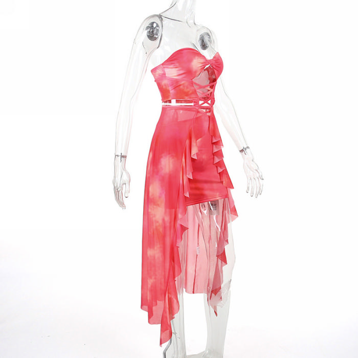 (Real Image)2023 Styles Women Sexy&Fashion Spring&Summer TikTok&Instagram Styles Rose Lace Up Irregular Maxi DressSKU: #XF92779-1