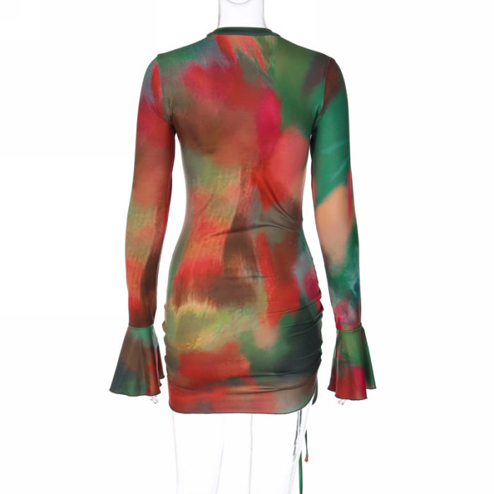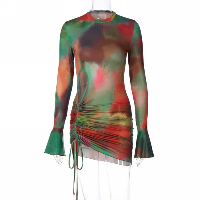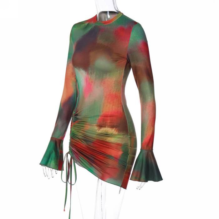 (Real Image)2023 Styles Women Sexy&Fashion Spring&Summer TikTok&Instagram Styles Round Neck Long Sleeve Mini DressSKU: #CF38282-1
