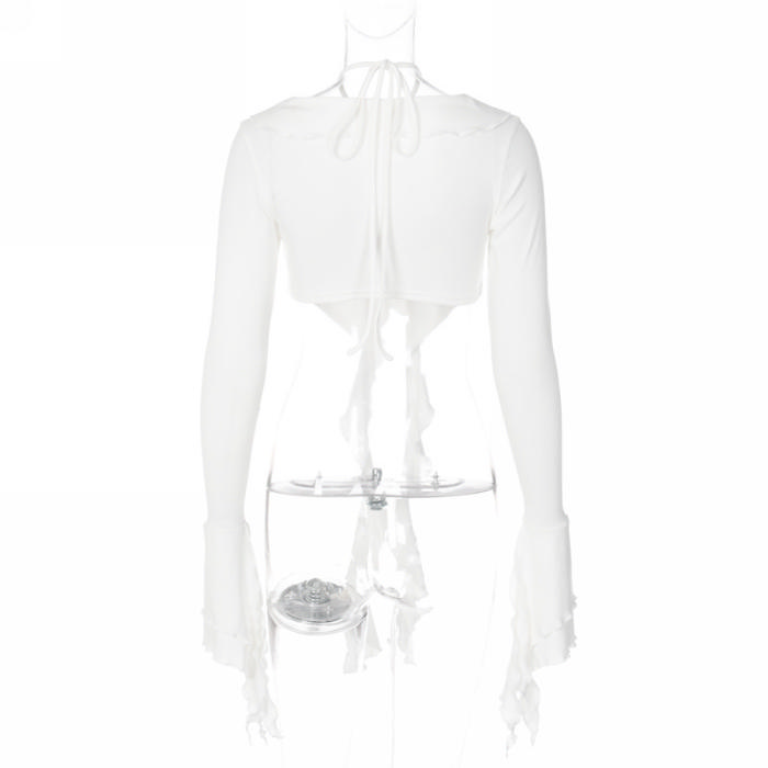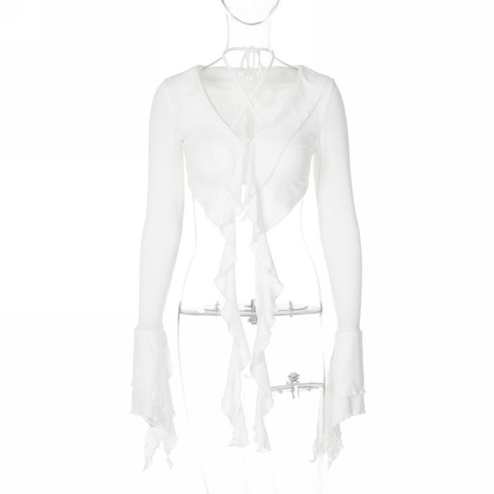(Real Image)2023 Styles Women Sexy&Fashion Spring&Summer TikTok&Instagram Styles Ruffle Long Sleeve ShirtsSKU: #OM419-1