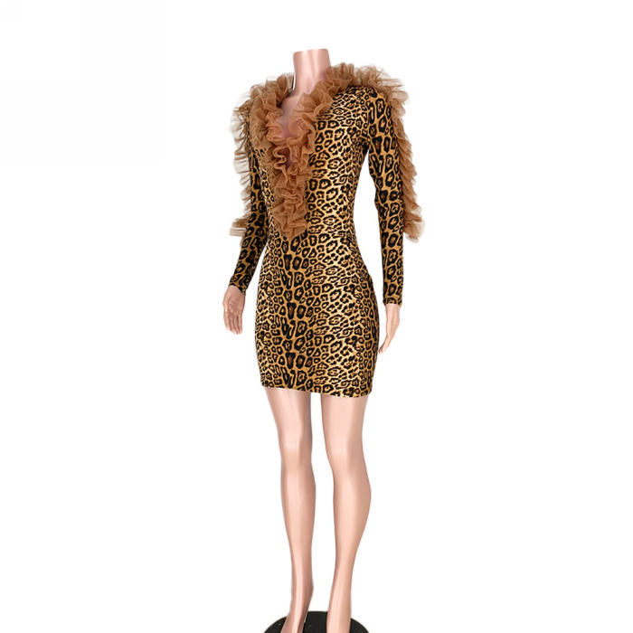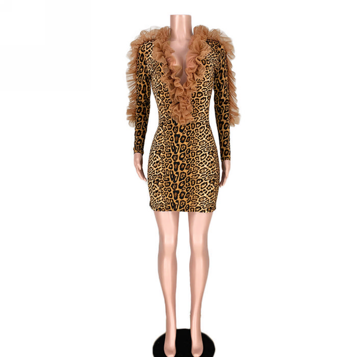 (Real Image)2023 Styles Women Sexy&Fashion Spring&Summer TikTok&Instagram Styles Ruffle V Neck Long Sleeve Mini DressSKU: #OEM5887-4