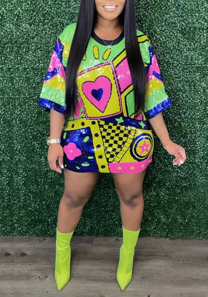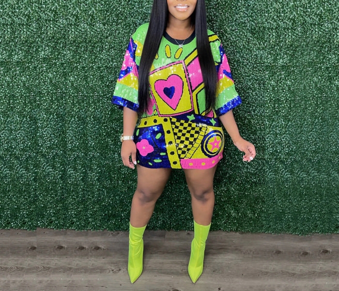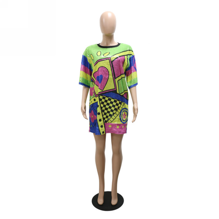 (Real Image)2023 Styles Women Sexy&Fashion Spring&Summer TikTok&Instagram Styles Sequins Cartoon Casual DressSKU: #CF27200-1