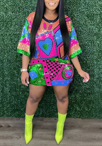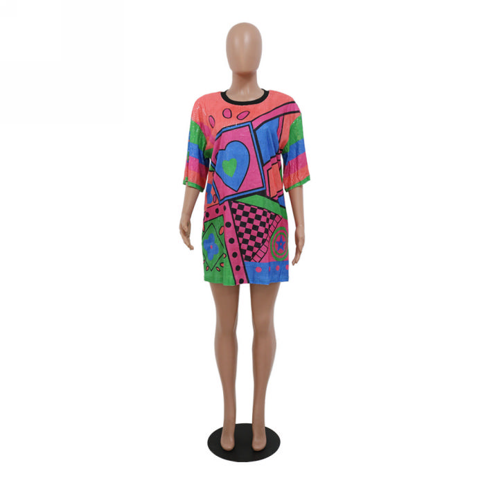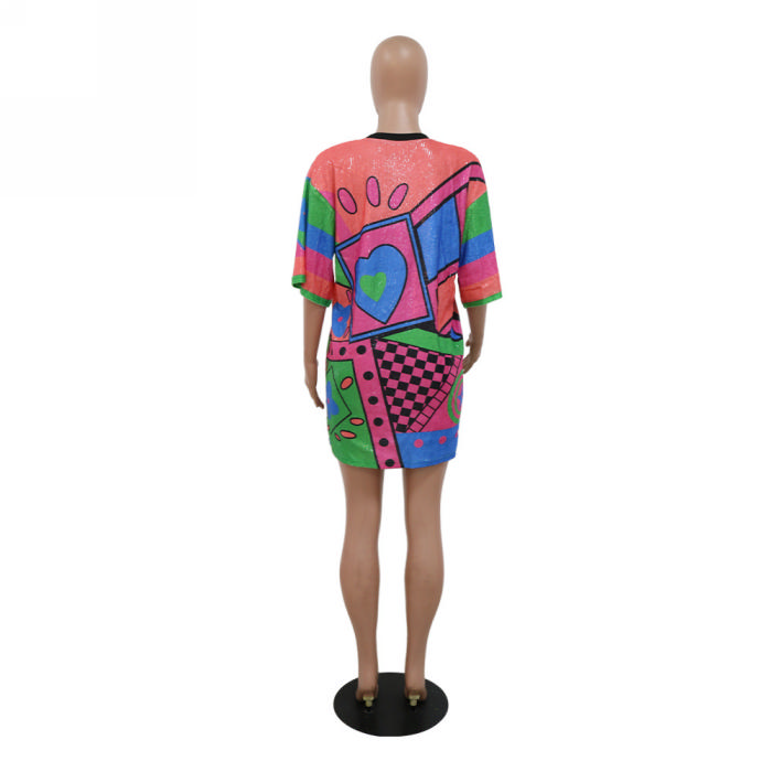 (Real Image)2023 Styles Women Sexy&Fashion Spring&Summer TikTok&Instagram Styles Sequins Cartoon Casual DressSKU: #CF27200-5