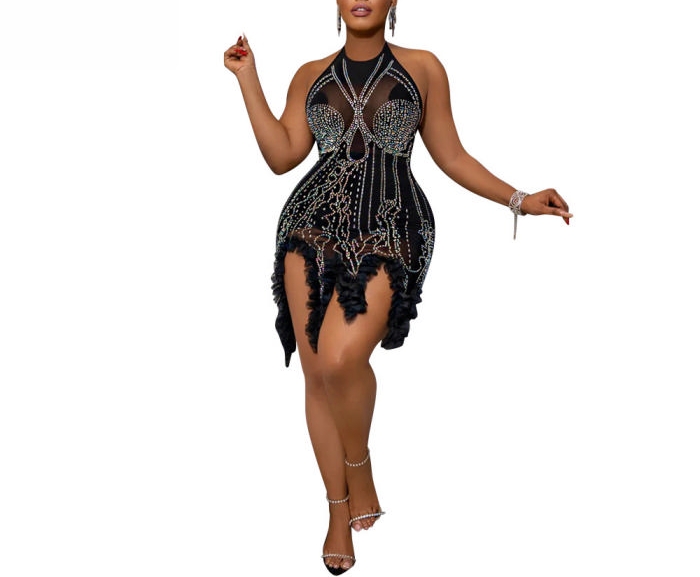 (Real Image)2023 Styles Women Sexy&Fashion Spring&Summer TikTok&Instagram Styles Sequins Mesh Club DressSKU: #CF27210-1