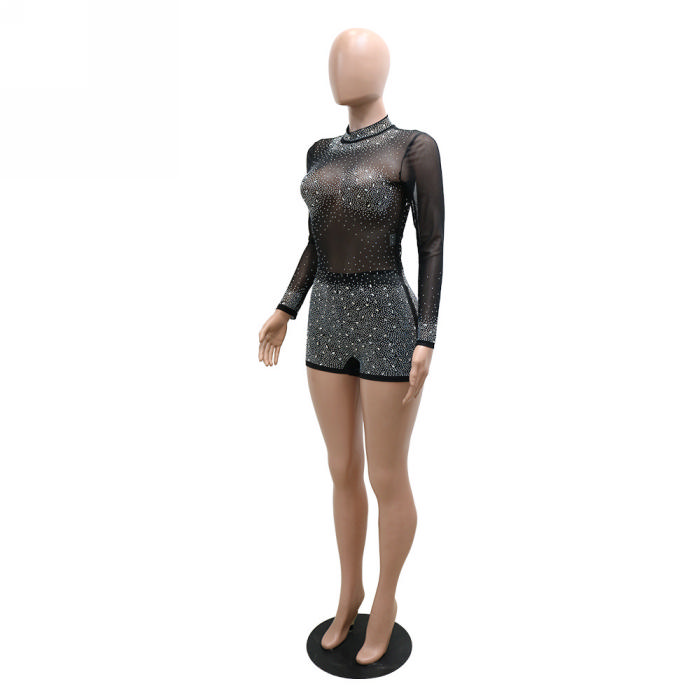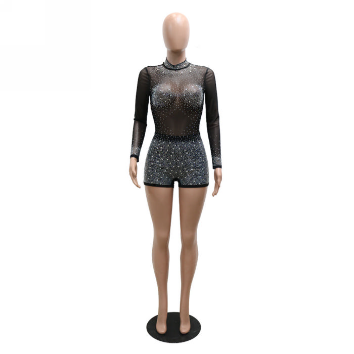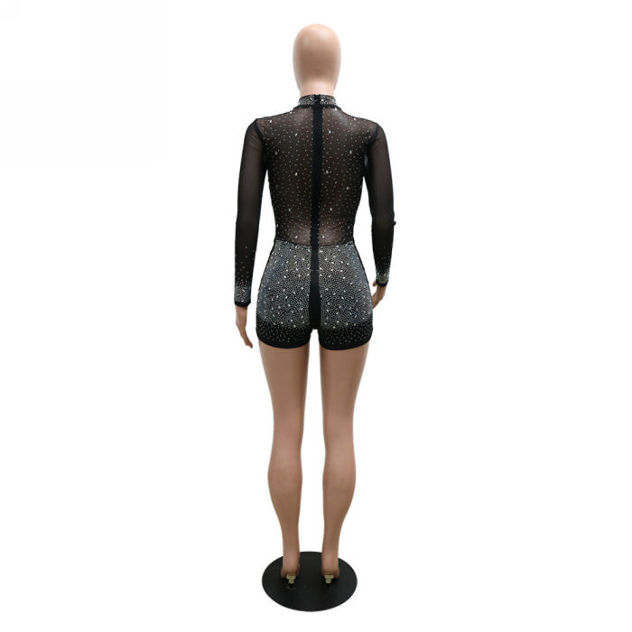 (Real Image)2023 Styles Women Sexy&Fashion Spring&Summer TikTok&Instagram Styles Sequins Mesh Long Sleeve RomperSKU: #CF27205-1