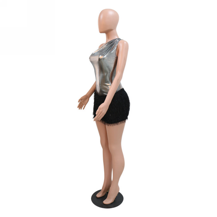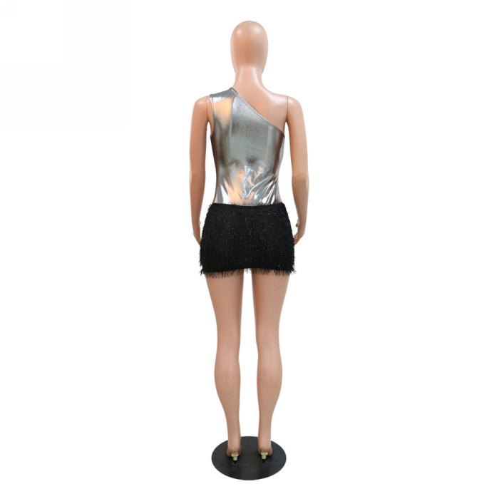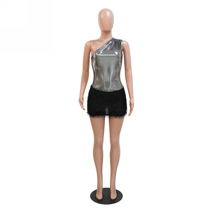(Real Image)2023 Styles Women Sexy&Fashion Spring&Summer TikTok&Instagram Styles Sequins Single Shoulder Club DressSKU: #CF27204-1