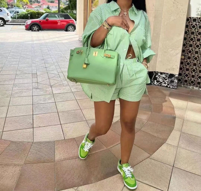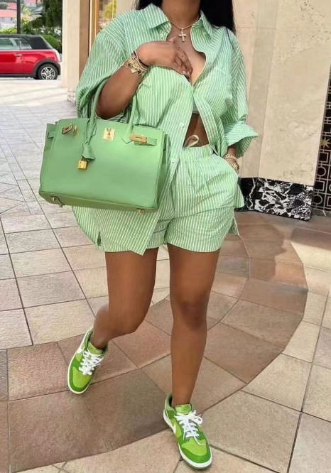 (Real Image)2023 Styles Women Sexy&Fashion Spring&Summer TikTok&Instagram Styles Shirts Short Two Piece SuitSKU: #OU262-1