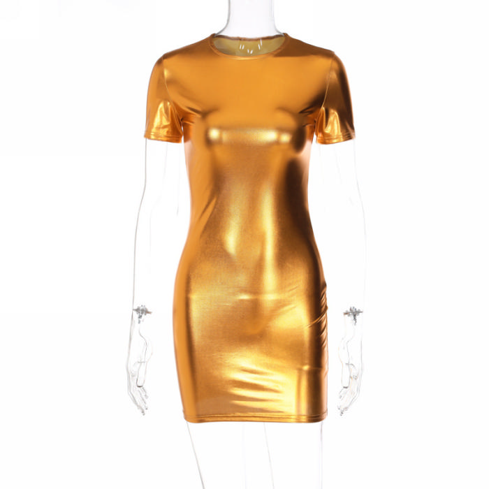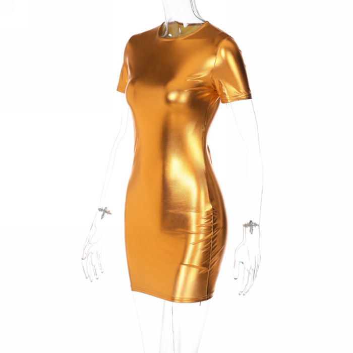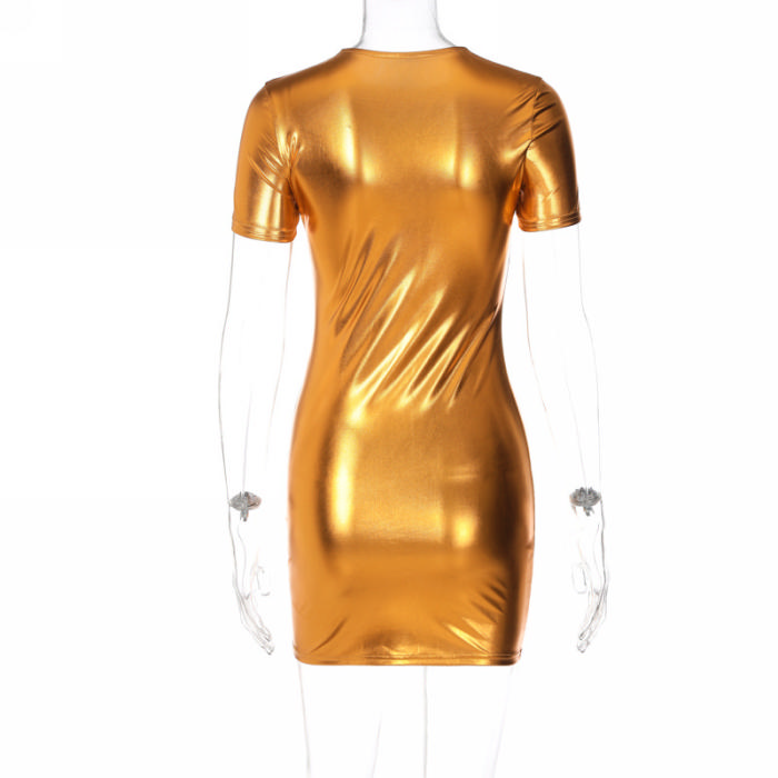 (Real Image)2023 Styles Women Sexy&Fashion Spring&Summer TikTok&Instagram Styles Short Sleeve Gold Club DressSKU: #CF38180-1