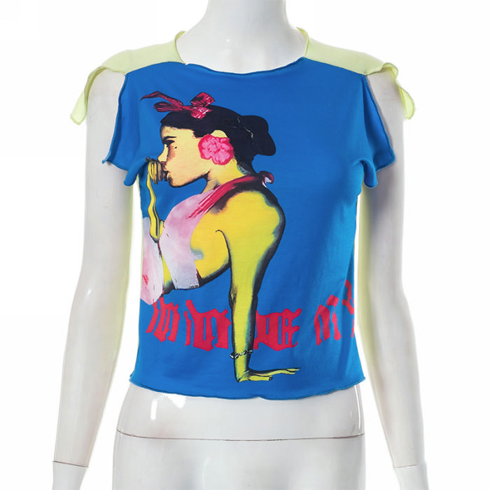 (Real Image)2023 Styles Women Sexy&Fashion Spring&Summer TikTok&Instagram Styles Short Sleeve Print TeeSKU: #CF76128-1