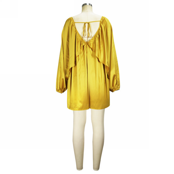 (Real Image)2023 Styles Women Sexy&Fashion Spring&Summer TikTok&Instagram Styles Silk Loose Long Sleeve Hem Mini DressSKU: #OEM5870-1