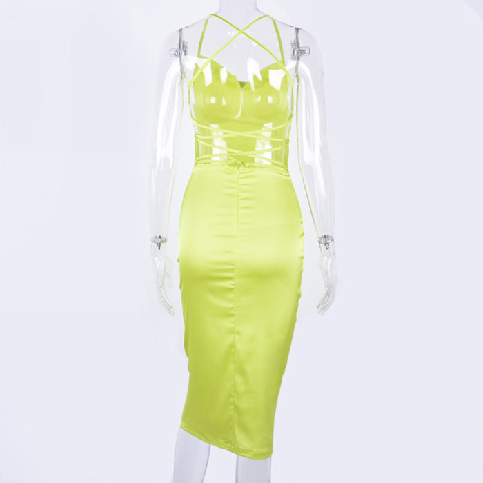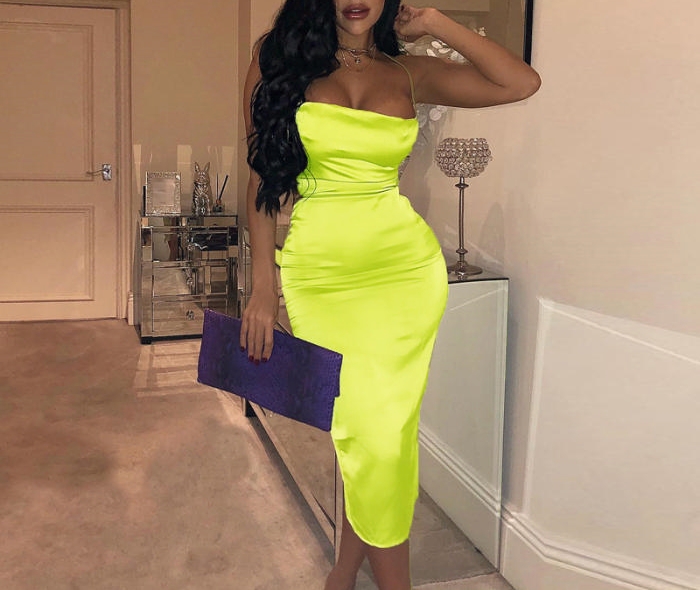 (Real Image)2023 Styles Women Sexy&Fashion Spring&Summer TikTok&Instagram Styles Silk Midi DressSKU: #CF22893-3