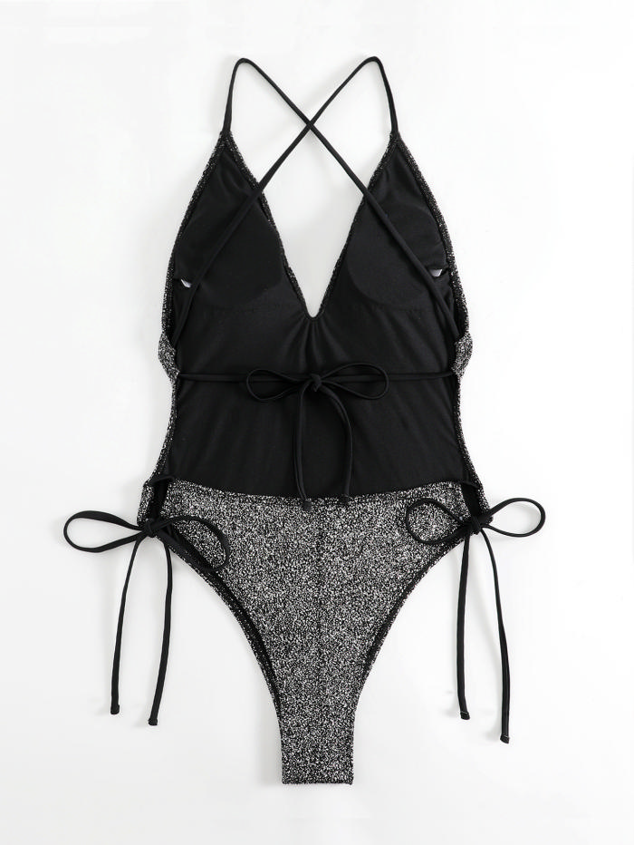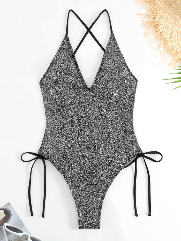 (Real Image)2023 Styles Women Sexy&Fashion Spring&Summer TikTok&Instagram Styles Silver One Piece SwimwearSKU: #CF31203-1