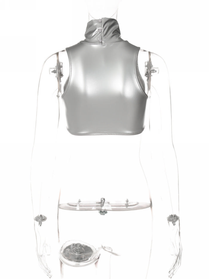 (Real Image)2023 Styles Women Sexy&Fashion Spring&Summer TikTok&Instagram Styles Silver Tank TopsSKU: #CF22948-1