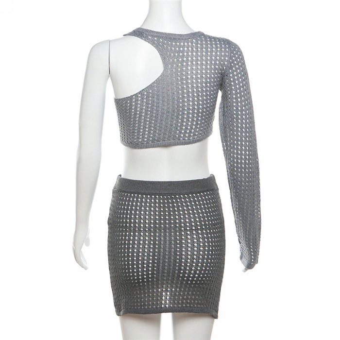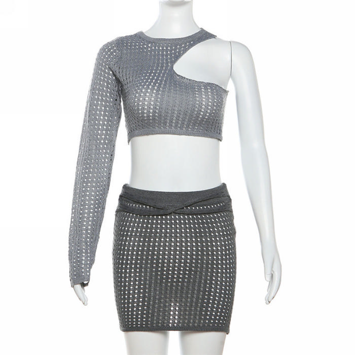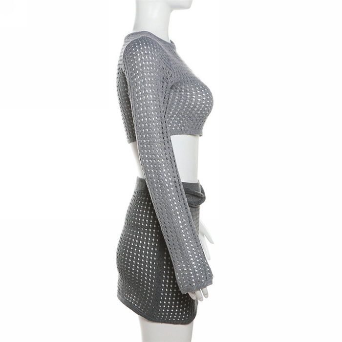 (Real Image)2023 Styles Women Sexy&Fashion Spring&Summer TikTok&Instagram Styles Single Long Sleeve Hollow Net Two Piece DressSKU: #CF77476-1