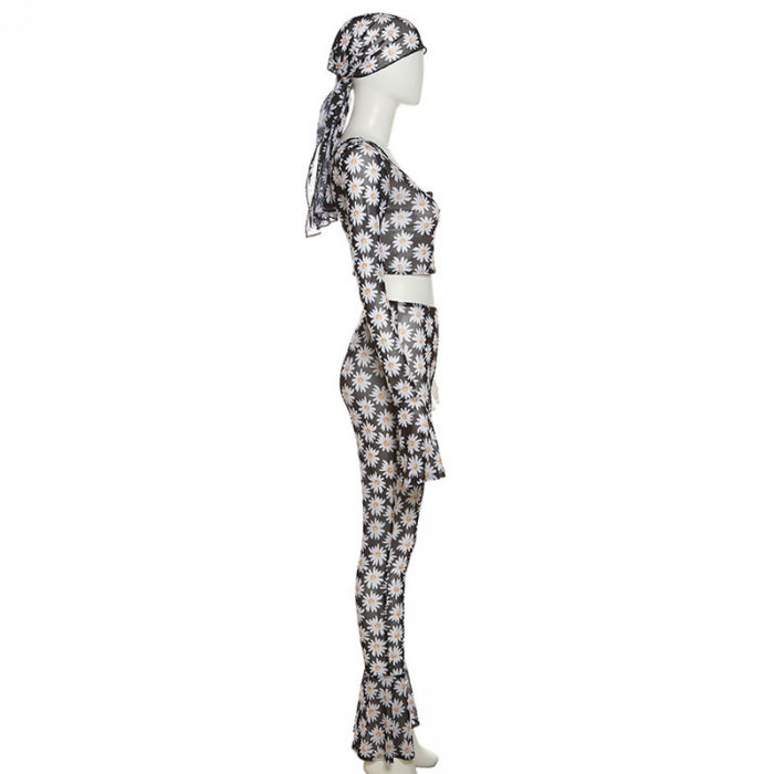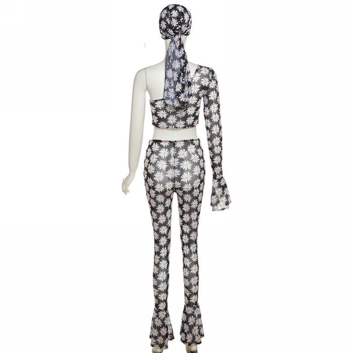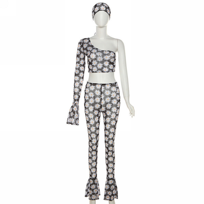 (Real Image)2023 Styles Women Sexy&Fashion Spring&Summer TikTok&Instagram Styles Single Shoulder Chrysanthemum Two Piece SuitSKU: #CF77292-1