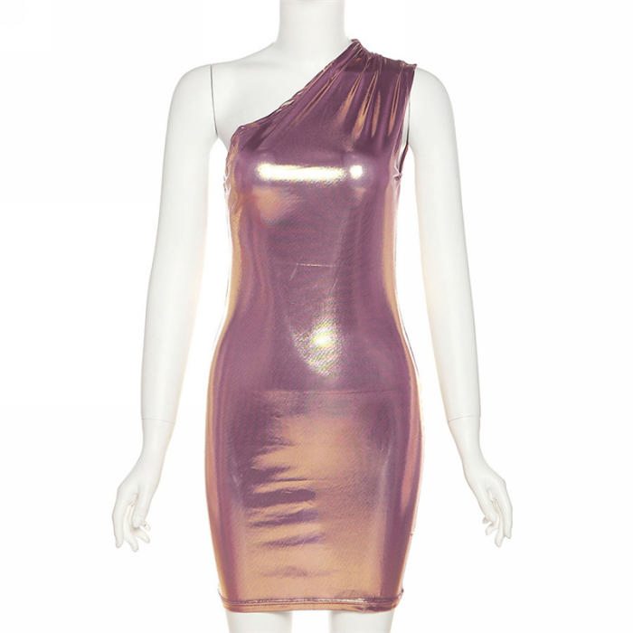 (Real Image)2023 Styles Women Sexy&Fashion Spring&Summer TikTok&Instagram Styles Single Shoulder Club DressSKU: #OM422-7