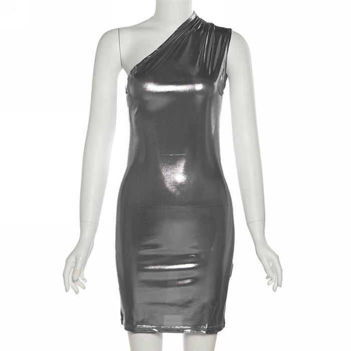 (Real Image)2023 Styles Women Sexy&Fashion Spring&Summer TikTok&Instagram Styles Single Shoulder Club DressSKU: #OM422-3