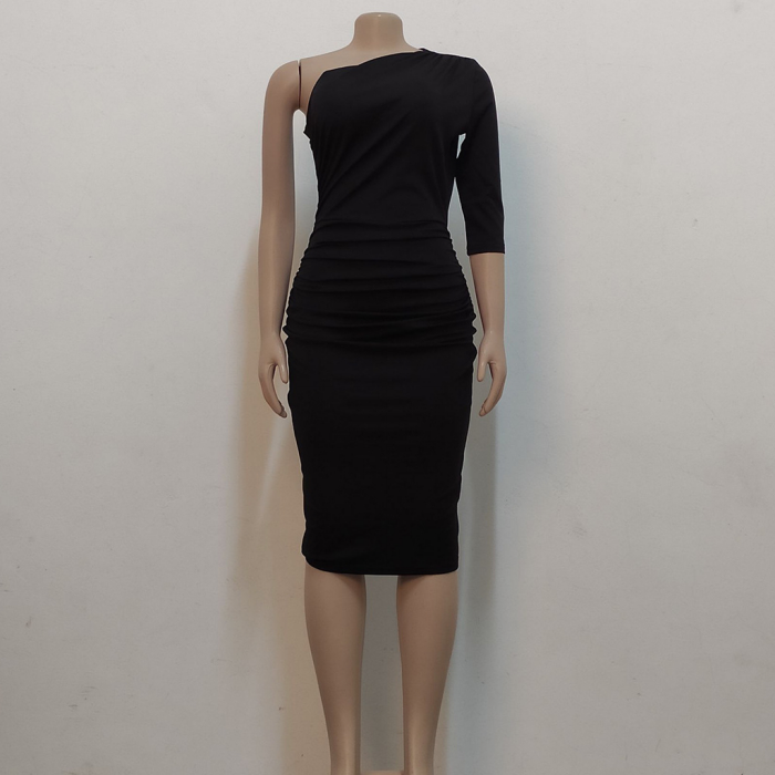 (Real Image)2023 Styles Women Sexy&Fashion Spring&Summer TikTok&Instagram Styles Single Shoulder Long Sleeve Midi DressSKU: #OU281-2