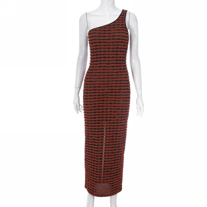 (Real Image)2023 Styles Women Sexy&Fashion Spring&Summer TikTok&Instagram Styles Single Shoulder Maxi DressSKU: #CF47478-1