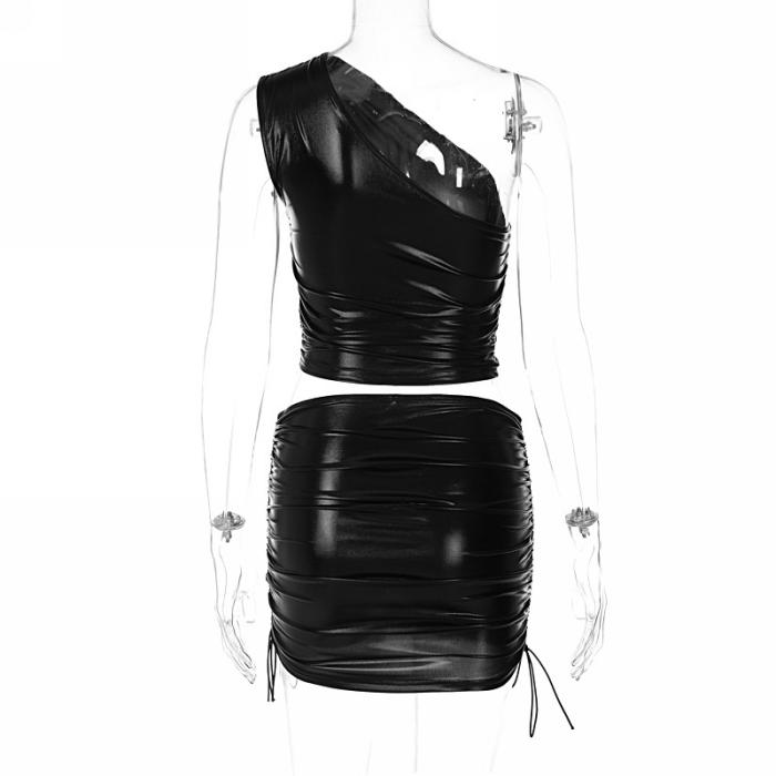(Real Image)2023 Styles Women Sexy&Fashion Spring&Summer TikTok&Instagram Styles Single Shoulder Two Piece DressSKU: #OM423-2