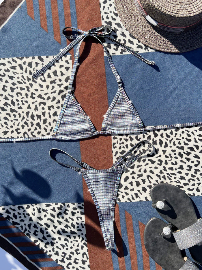 (Real Image)2023 Styles Women Sexy&Fashion Spring&Summer TikTok&Instagram Styles Sliver Bikini SetSKU: #CF35099-1