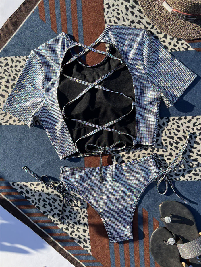 (Real Image)2023 Styles Women Sexy&Fashion Spring&Summer TikTok&Instagram Styles Sliver Tankinis SetSKU: #CF35102-1