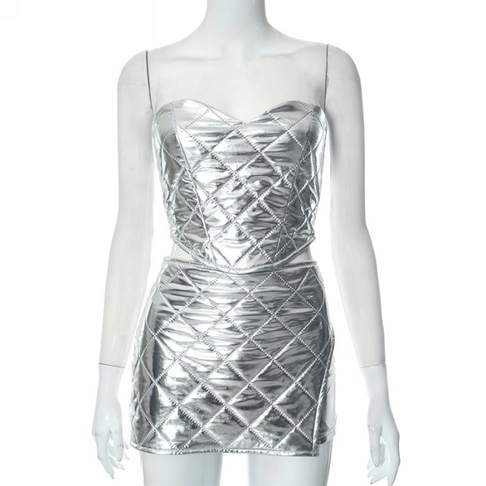 (Real Image)2023 Styles Women Sexy&Fashion Spring&Summer TikTok&Instagram Styles Sliver Two Piece DressSKU: #CF47709-1