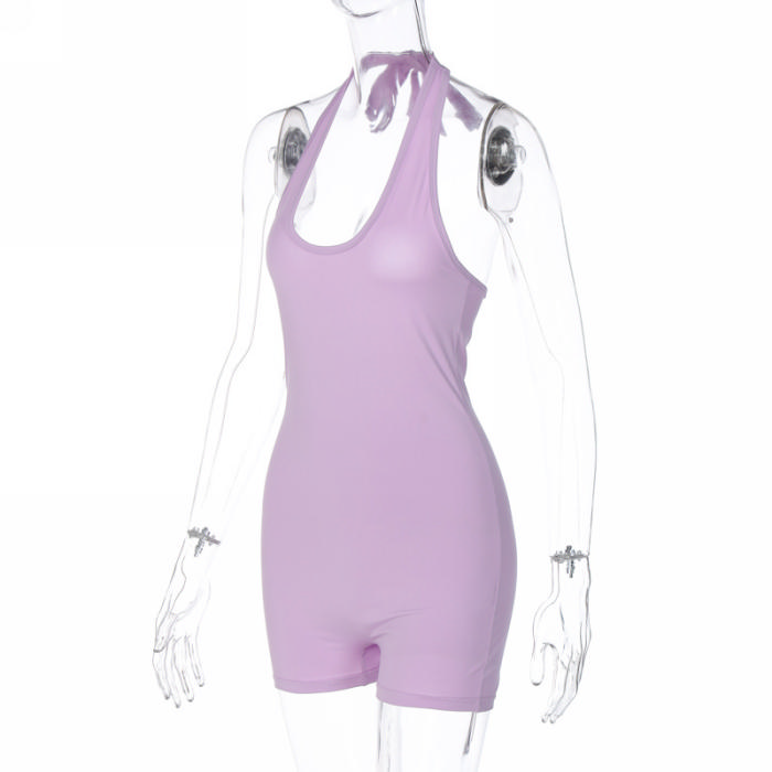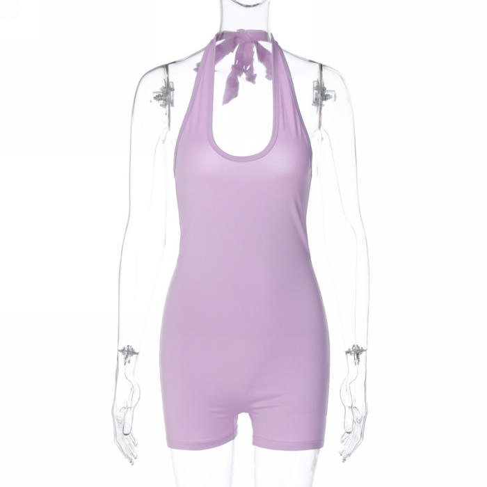 (Real Image)2023 Styles Women Sexy&Fashion Spring&Summer TikTok&Instagram Styles Solid Color Halter RomperSKU: #CF22985-1
